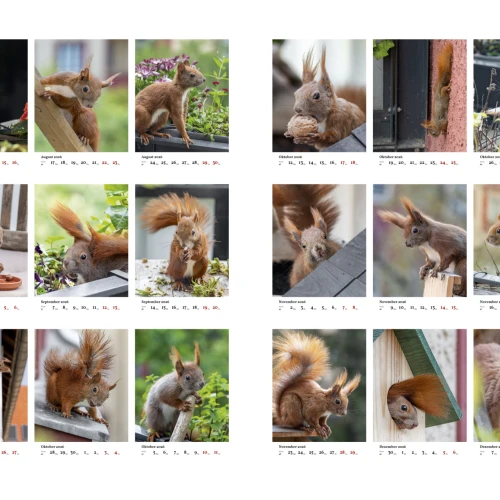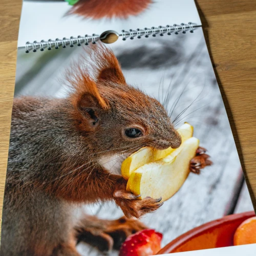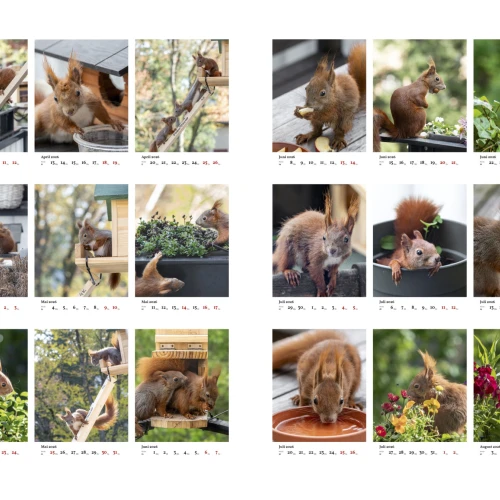 Wochenkalender zum Aufhängen mit 53 einzigartigen Fotos von kleinen und großen Eichhörnchen